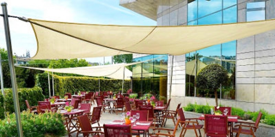 2 x Warschau und zurück - Sonnensegel rollbar für das Hyatt Hotel