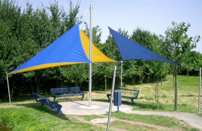 System mit 3 Masten. Ausgestattet mit einem wasserdurchlässigem Tuch 932.